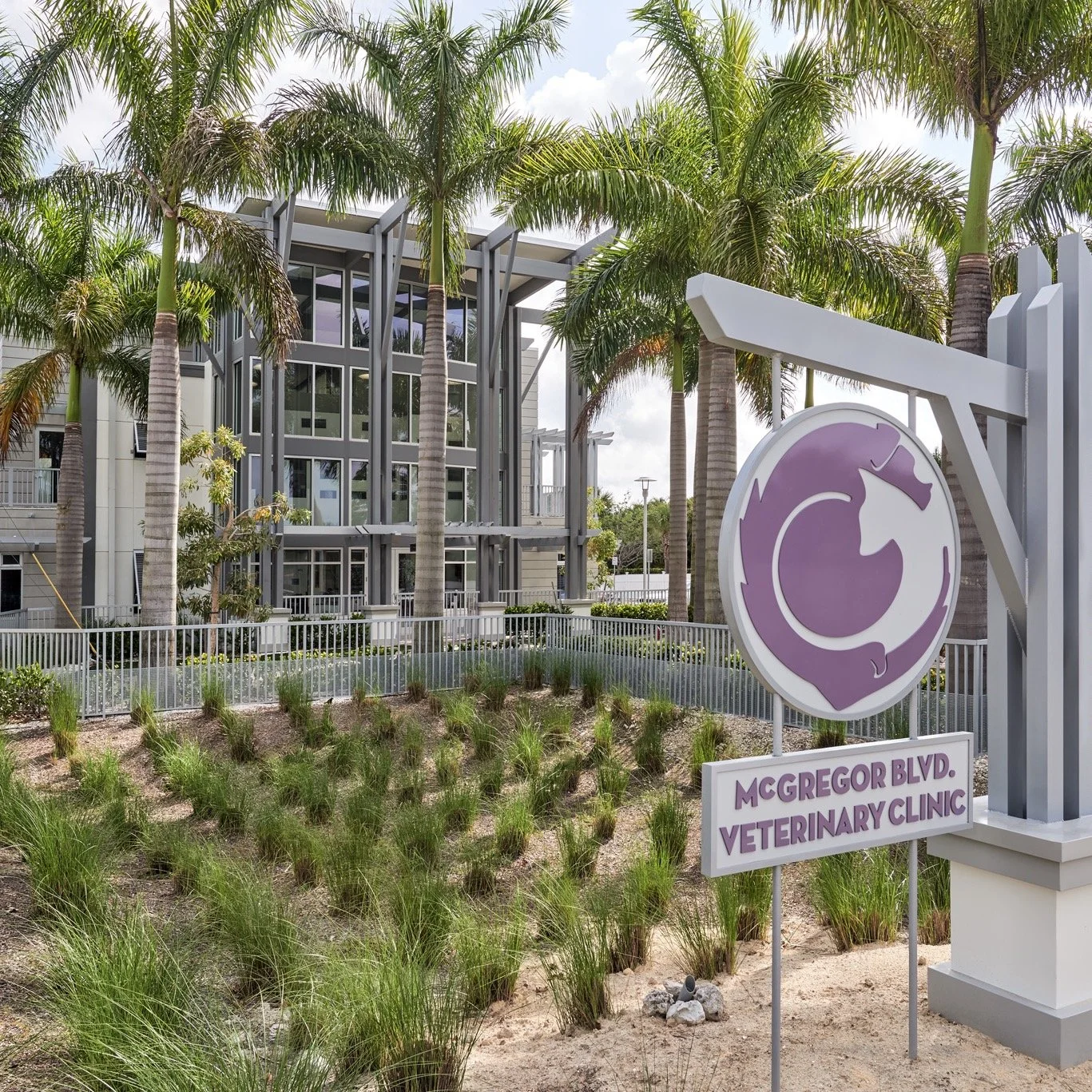 McGregor Blvd Veterinary Clinic is a prestigious two Doctor, privately owned practice under the direction of Dr. Lura Jones, for over 21 years. Doctors Lura Jones and Courtney Butts are both Florida natives and graduates of the University of Florida. McGregor Blvd Veterinary Clinic is a state-of-the-art facility, winning the 2017 DVM 360 National Hospital of the Year Design among other awards. Our building is recognized as a model for sustainability with Zen-like atmosphere courtesy of natural daylighting, modern design elements, and energy efficient building systems set within a native Florida landscape.